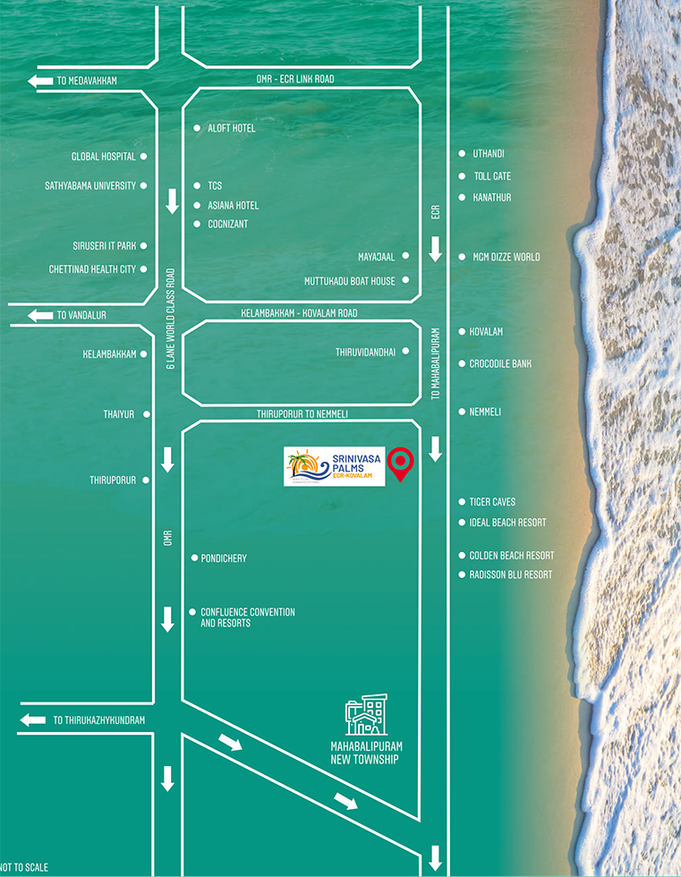 Located near hotspots like Pattipulam Beach, Mahabalipuram Township, and OneHub Industrial Park, the project is surrounded by premium resorts, reputed schools, colleges, hospitals, and entertainment. This is not just a plot – it’s an investment in heritage, nature, and tranquility, with every element tuned to the rhythm of the waves.