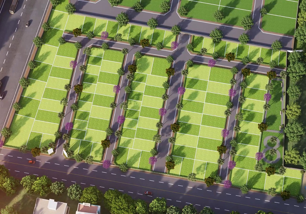 With plot sizes from 650 to 1,800 sq. ft., two large green parks spanning 21,000+ sq. ft., and features like solar-lit streets, kids’ play zones, senior citizen park, and blacktop roads, this community is crafted for value appreciation and peaceful living.