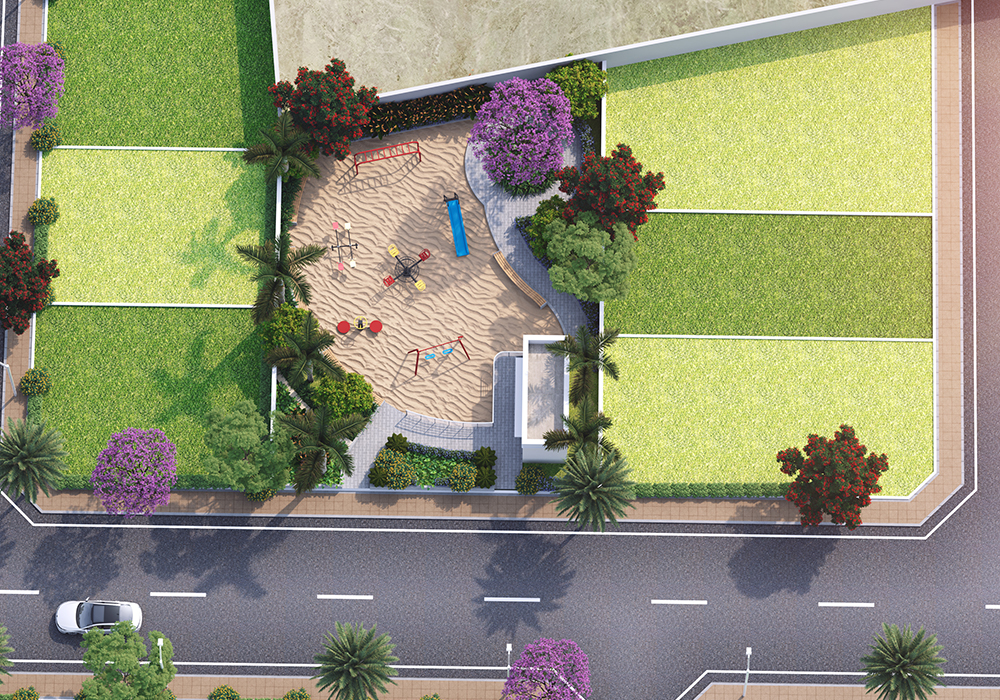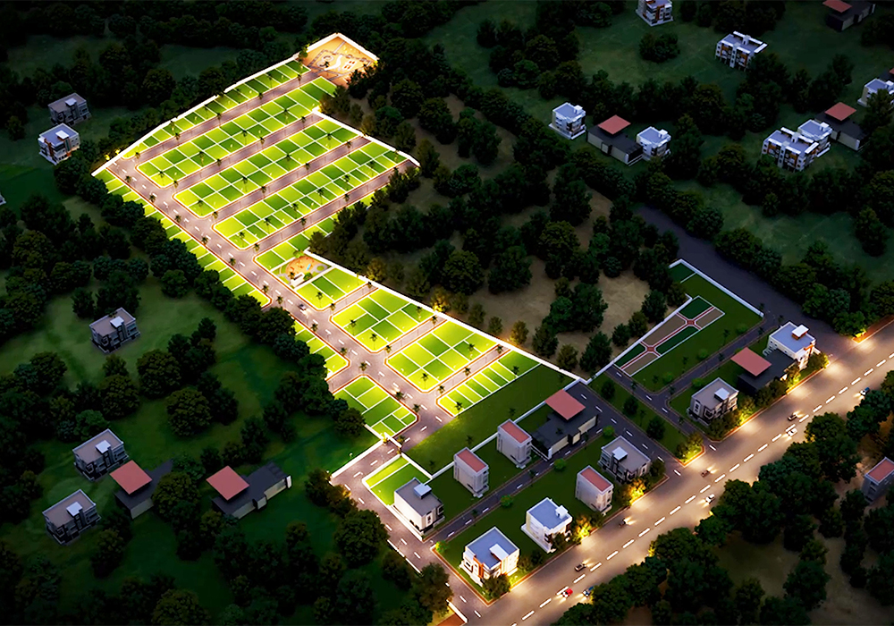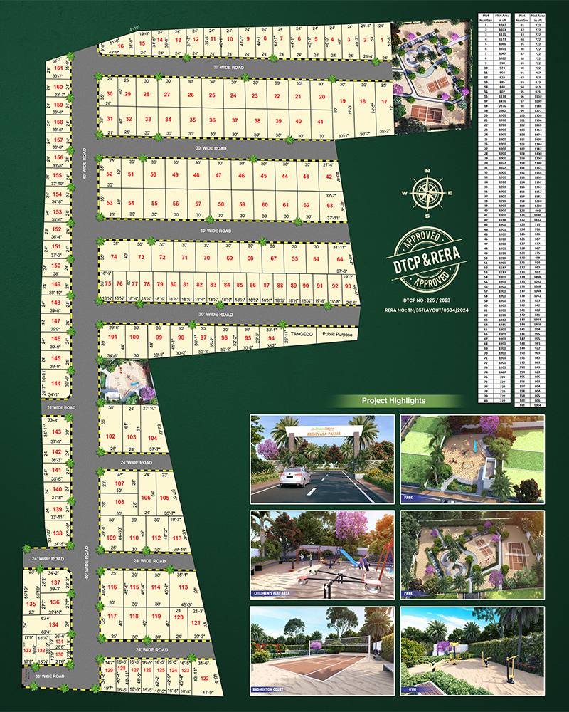 With plot sizes from 650 to 1,800 sq. ft., two large green parks spanning 21,000+ sq. ft., and features like solar-lit streets, kids’ play zones, senior citizen park, and blacktop roads, this community is crafted for value appreciation and peaceful living.